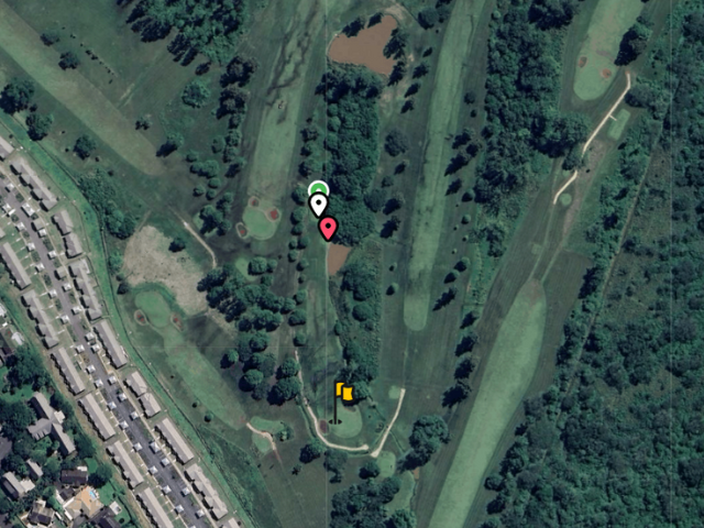 A truly beautiful hole from the back tee-box. It’s reachable in two with the tee shot carrying a dam. There are trees on the left and trouble on the right, if you are going for the green with a long club, keep it straight. Not a difficult hole if one is careful and plays it to arrive at the green in regulation.